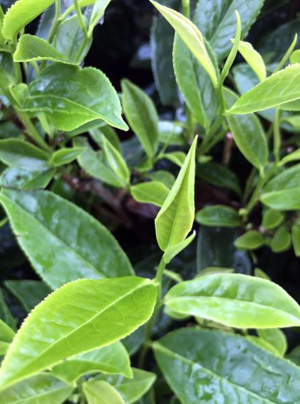 【性狀特征】茶樹無性系品種之一,葉長橢圓形,葉色黃綠,有光澤,葉面較平,葉尖漸尖,葉質(zhì)較柔軟,芽葉黃綠色。灌木型,中葉類,樹姿半開展,葉長9.2cm,葉寬3.3cm,葉面平整葉色黃綠,分枝密度適中,葉著生上斜。3月中旬萌芽,4月中旬開采。花冠長寬為3×31mm。花瓣6-8片,花萼無毛,抗逆性強(qiáng)。