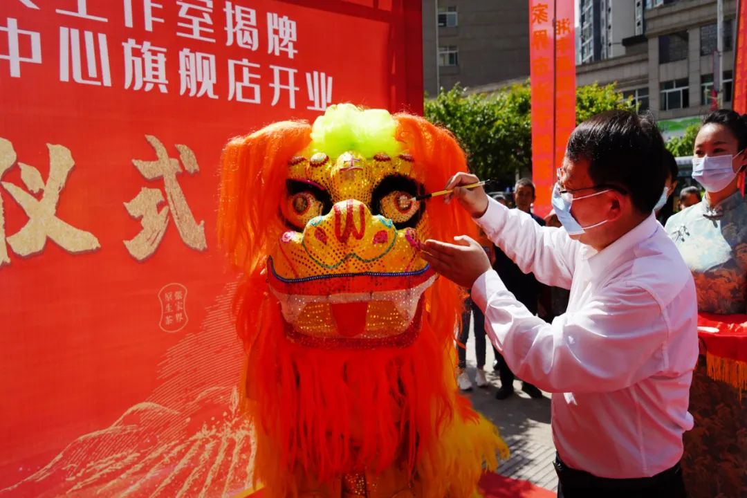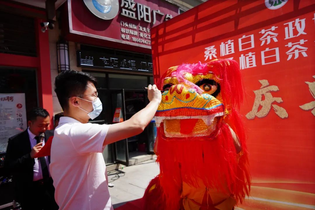 隨后,一陣鏗鏘有力、熱鬧非凡的鑼鼓響起,兩頭金獅在場上翻騰起舞,精彩的舞獅表演將現(xiàn)場的氣氛推向了高潮,吸引了眾多市民駐足觀賞。李中欽先生與湯程霖先生一同為金獅點睛,寓意湘豐桑植白茶行政中心旗艦店鴻運當(dāng)頭,開業(yè)大吉。
