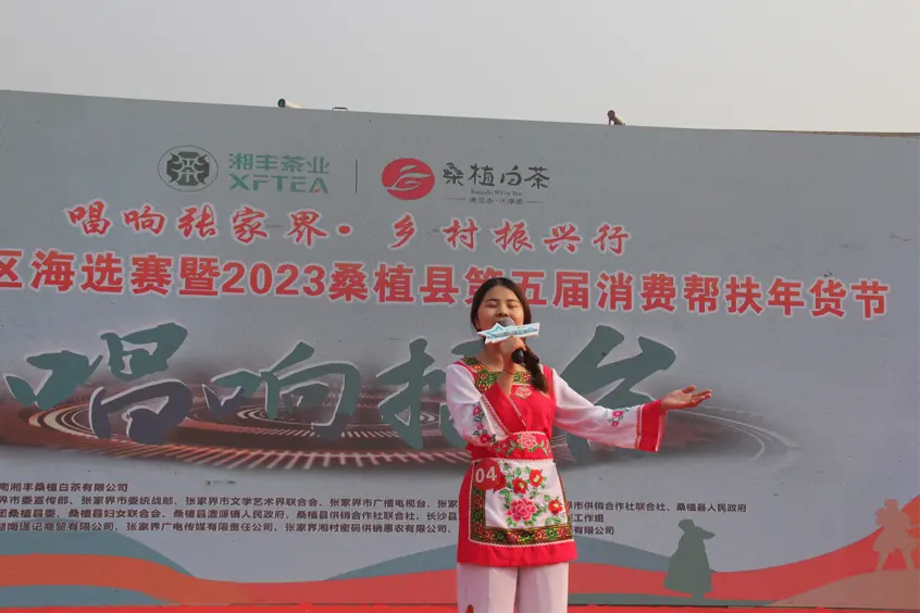 2023 年 1 月 10 日,湘豐茶業(yè)·桑植白茶《唱響擂臺》張家界賽區(qū)海選賽暨 2023 桑植縣第五屆消費(fèi)幫扶年貨節(jié)活動在桑植縣民歌廣場隆重舉行?!冻懤夼_》是中國首檔定位音樂推介幸福的鄉(xiāng)村綜藝秀,本次活動由桑植縣 23個鄉(xiāng)鎮(zhèn)(每個鄉(xiāng)鎮(zhèn)推舉一位民間歌手代表)采取線下場地擂臺賽的方式,現(xiàn)場專業(yè)評委評判,呈現(xiàn)歌曲產(chǎn)品雙向賦能、推薦家鄉(xiāng)好物,打造幸福鄉(xiāng)村主題歌曲。讓桑植的歌聲越過大山,讓更多人聽到!